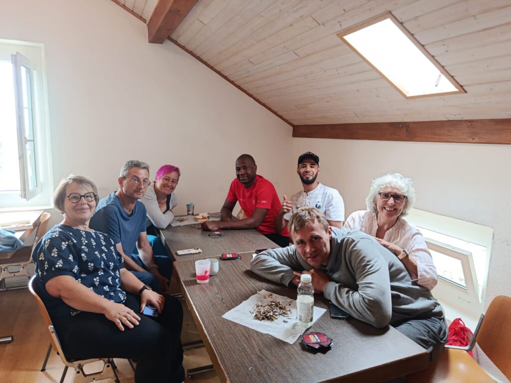 Le « repas-partage » est la première étape ouvrant cette rencontre. Les requérants consomment le repas qui est servi habituellement à la structure de jour, tandis que les visiteurs mangent un repas qu’ils ont eux-mêmes apporté. Le temps d’une digestion de 15 minutes et place au loisir !