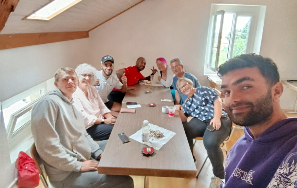 Nous sommes le jeudi 18 septembre 2025, il est 11h45. Marika, l’une des bénévoles, arpente les escaliers pour se rendre au deuxième étage et rejoindre les requérants d’asile qui lui réservent un accueil chaleureux. Ensemble, ils regroupent deux tables et y disposent autour une dizaine de chaises. Arrivent ensuite trois autres bénévoles, Bertrand, Sylvia et Sophie, et à 12h00 débute leur visite à la structure de jour. Les demandeurs d’asile, vivant majoritairement loin de leurs familles, trouvent en ces visites un moment important pour combler leur profonde solitude et apaiser leur stress.